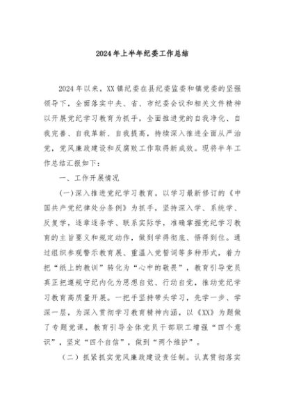 / 【七哥公文】2024年:2024年上半年纪委工作总结+更多免费公文+VX:QiGeGongWen2024