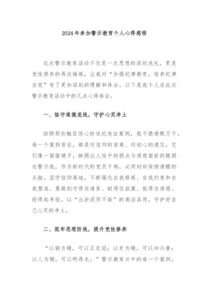 / 【七哥公文】2024年:2024年参加警示教育个人心得感悟+更多免费公文+VX:QiGeGongWen2024