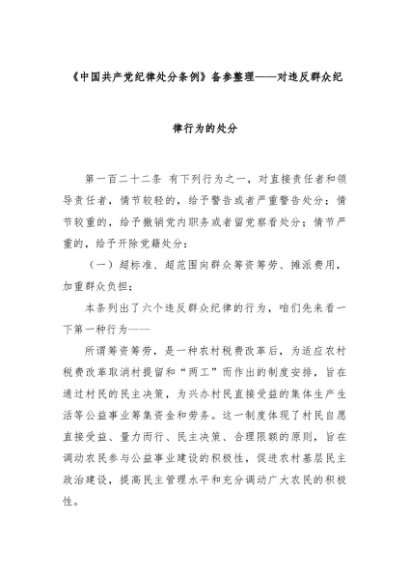 【七哥公文】2024年:《中国共产党纪律处分条例》备参整理——对违反群众纪律行为的处分+更多免费公文+VX:QiGeGongWen2024