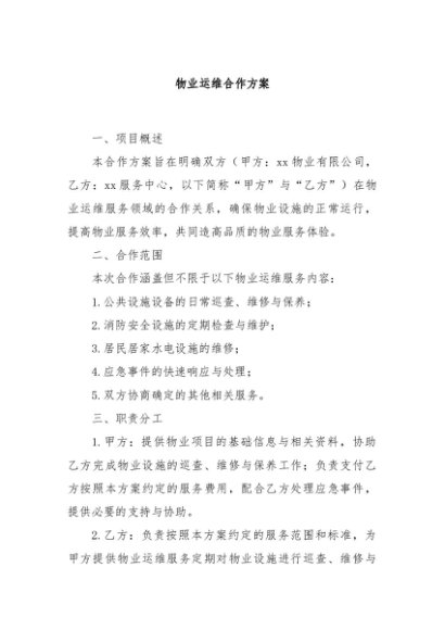 / 【七哥公文】2024年:物业运维合作方案+更多免费公文+VX:QiGeGongWen2024