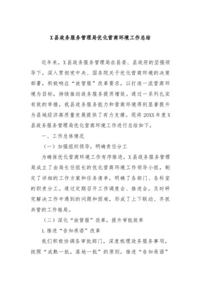 / 【七哥公文】2024年:X县政务服务管理局优化营商环境工作总结+更多免费公文+VX:QiGeGongWen2024