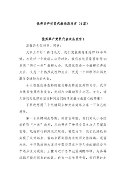 / 【七哥公文】2024年:(4篇)优秀共产党员代表表态发言+更多免费公文+VX:QiGeGongWen2024