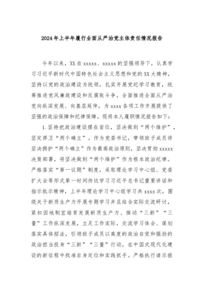 / 【七哥公文】2024年:2024年上半年履行全面从严治党主体责任情况报告+更多免费公文+VX:QiGeGongWen2024