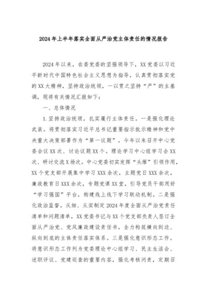 【七哥公文】2024年:2024年上半年落实全面从严治党主体责任的情况报告+更多免费公文+VX:QiGeGongWen2024