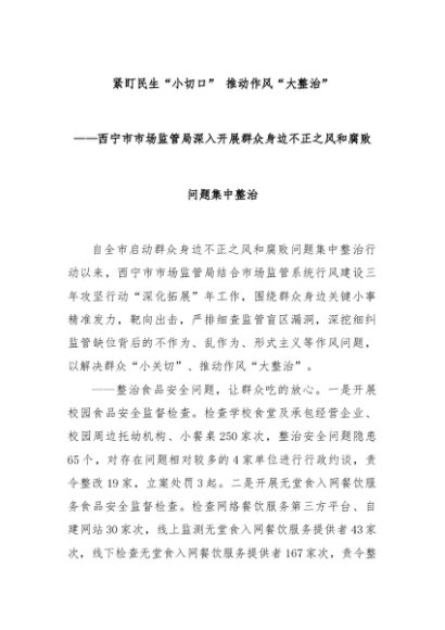 【七哥公文】2024年:紧盯民生“小切口” 推动作风“大整治”——西宁市市场监管局深入开展群众身边不正之风和腐败问题集中整治+更多免费公文+VX:QiGeGongWen2024