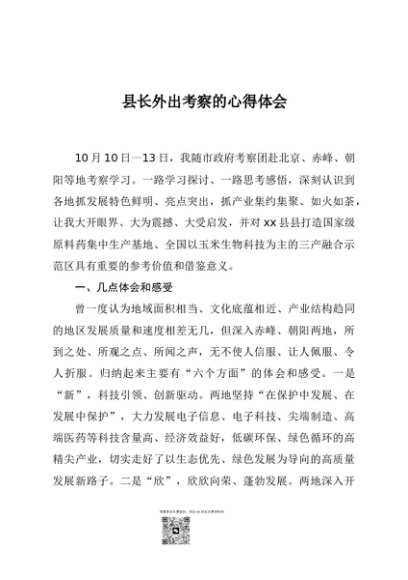 / 【七哥公文】2024年:县长外出考察的心得体会+更多免费公文+VX:QiGeGongWen2024