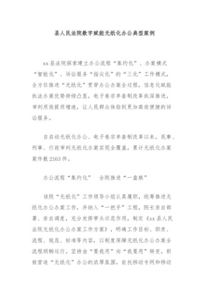 【七哥公文】2024年:县人民法院数字赋能无纸化办公典型案例+更多免费公文+VX:QiGeGongWen2024