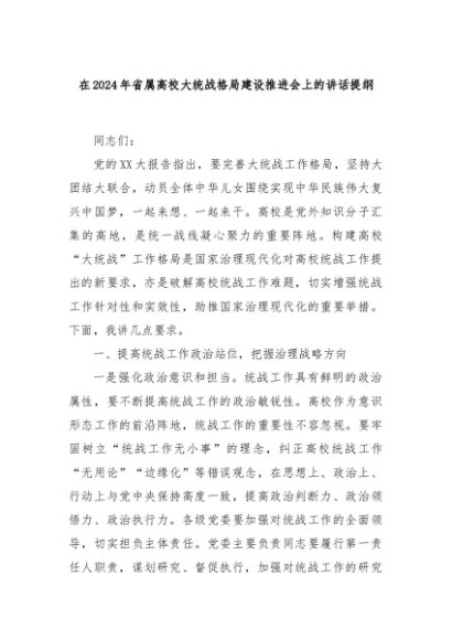 【七哥公文】2024年:在2024年省属高校大统战格局建设推进会上的讲话提纲+更多免费公文+VX:QiGeGongWen2024