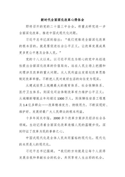 【七哥公文】2024年:新时代全面深化改革心得体会+更多免费公文+VX:QiGeGongWen2024