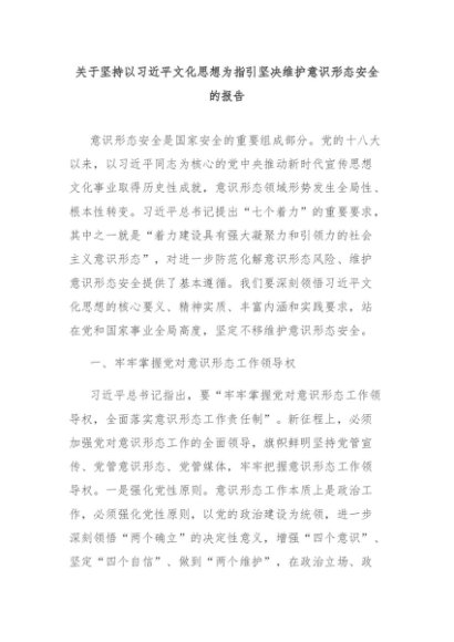 【七哥公文】2024年:关于坚持以习近平文化思想为指引坚决维护意识形态安全的报告+更多免费公文+VX:QiGeGongWen2024