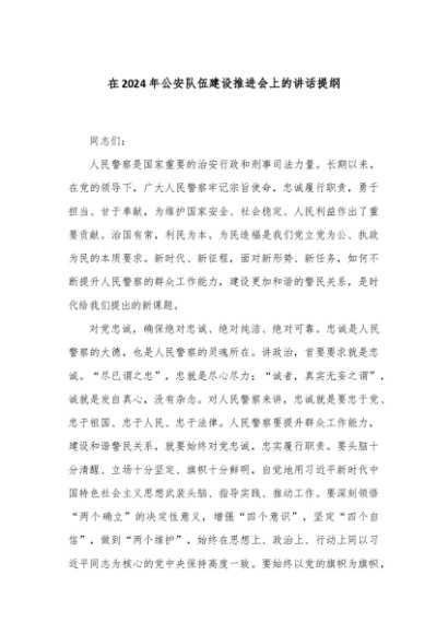 / 【七哥公文】2024年:在2024年公安队伍建设推进会上的讲话提纲+更多免费公文+VX:QiGeGongWen2024