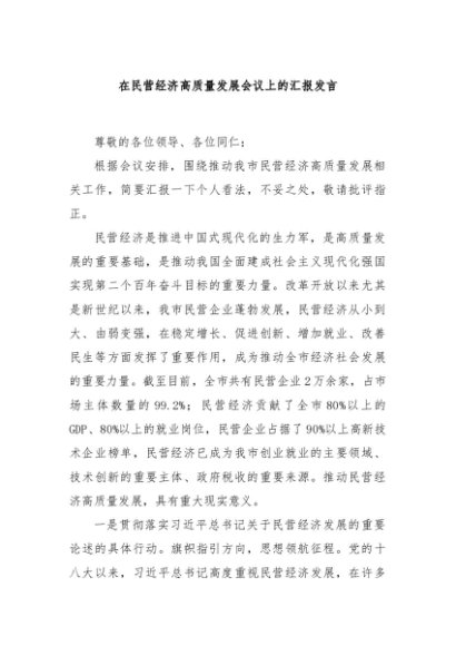 / 【七哥公文】2024年:在民营经济高质量发展会议上的汇报发言+更多免费公文+VX:QiGeGongWen2024