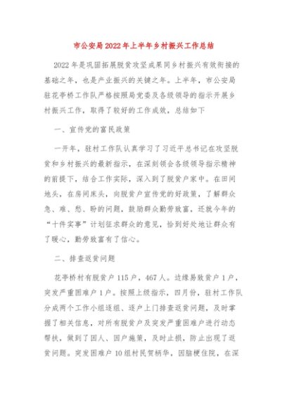 / 【七哥公文】2024年:市公安局2022年上半年乡村振兴工作总结+更多免费公文+VX:QiGeGongWen2024