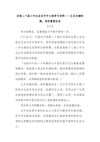 / 【七哥公文】2024年:庆祝二十届三中全会召开中心组学习材料+更多免费公文+VX:QiGeGongWen2024