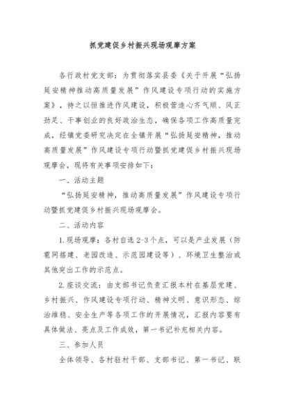 【七哥公文】2024年:抓党建促乡村振兴现场观摩方案+更多免费公文+VX:QiGeGongWen2024