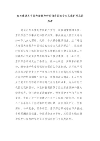 【七哥公文】2024年:有关建设具有强大凝聚力和引领力的社会主义意识形态的思考+更多免费公文+VX:QiGeGongWen2024