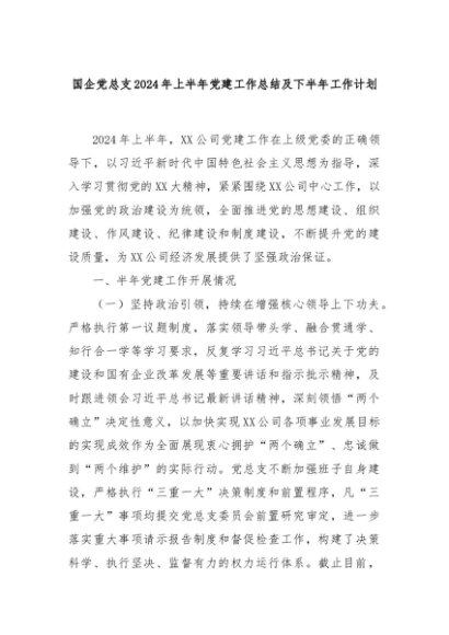【七哥公文】2024年:国企党总支2024年上半年党建工作总结及下半年工作计划+更多免费公文+VX:QiGeGongWen2024