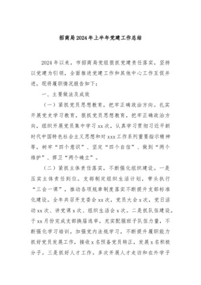 / 【七哥公文】2024年:招商局2024年上半年党建工作总结+更多免费公文+VX:QiGeGongWen2024