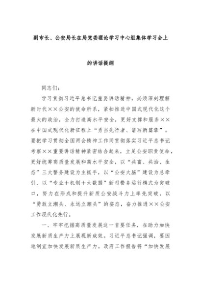 【七哥公文】2024年:副市长、公安局长在局党委理论学习中心组集体学习会上的讲话提纲+更多免费公文+VX:QiGeGongWen2024