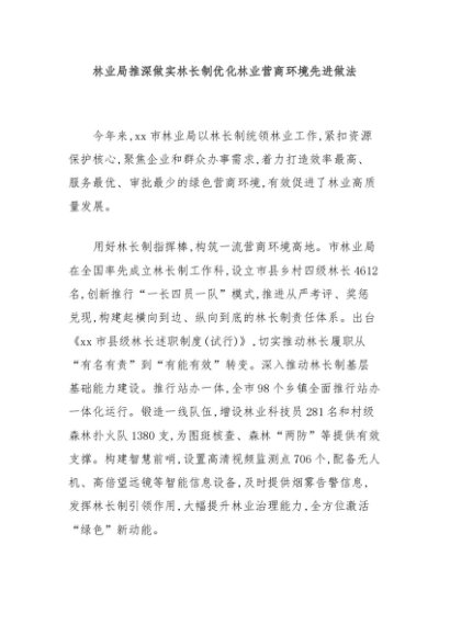 / 【七哥公文】2024年:林业局推深做实林长制优化林业营商环境先进做法+更多免费公文+VX:QiGeGongWen2024