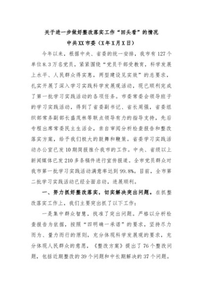 / 【七哥公文】2024年:关于进一步做好整改落实工作“回头看”的情况+更多免费公文+VX:QiGeGongWen2024