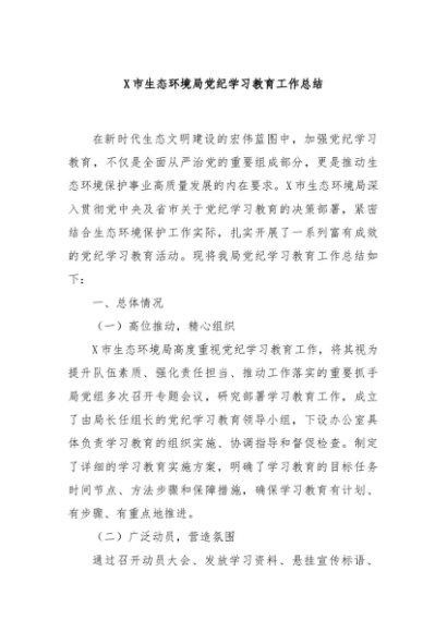 / 【七哥公文】2024年:X市生态环境局党纪学习教育工作总结+更多免费公文+VX:QiGeGongWen2024