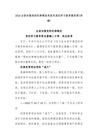 【七哥公文】2024年:2024全面加强党的纪律建设党政风党纪学习教育微党课(讲稿)+更多免费公文+VX:QiGeGongWen2024