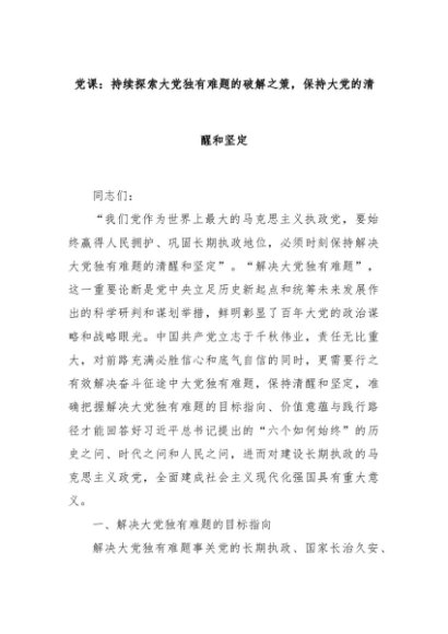 【七哥公文】2024年:党课:持续探索大党独有难题的破解之策,保持大党的清醒和坚定+更多免费公文+VX:QiGeGongWen2024