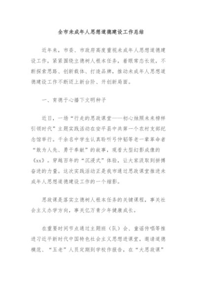 / 【七哥公文】2024年:全市未成年人思想道德建设工作总结+更多免费公文+VX:QiGeGongWen2024