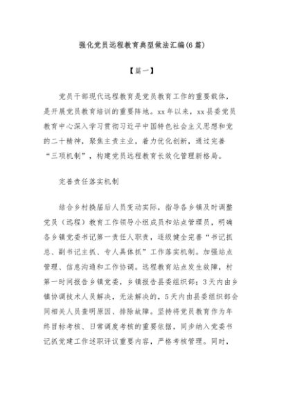 / 【七哥公文】2024年:(6篇)强化党员远程教育典型做法汇编+更多免费公文+VX:QiGeGongWen2024