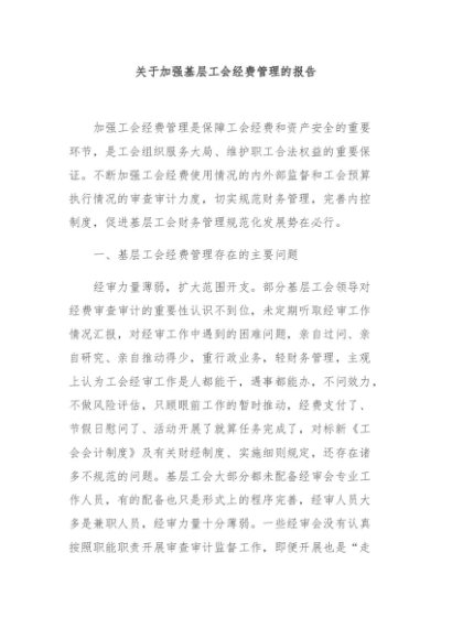 【七哥公文】2024年:关于加强基层工会经费管理的报告+更多免费公文+VX:QiGeGongWen2024