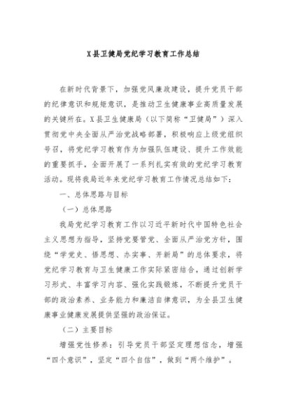 / 【七哥公文】2024年:X县卫健局党纪学习教育工作总结+更多免费公文+VX:QiGeGongWen2024