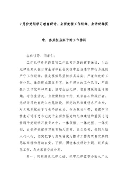 【七哥公文】2024年:7月份党纪学习教育研讨:全面把握工作纪律、生活纪律要求,养成担当实干的工作作风+更多免费公文+VX:QiGeGongWen2024