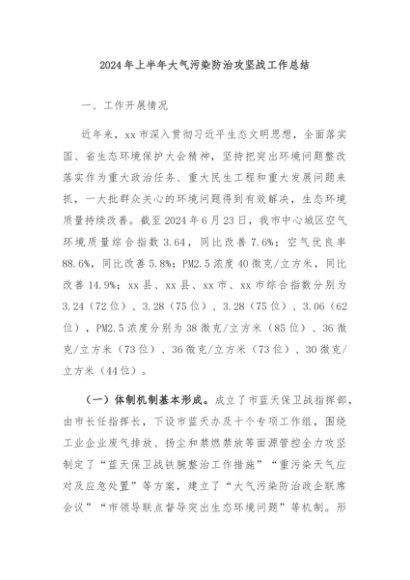 / 【七哥公文】2024年:2024年上半年大气污染防治攻坚战工作总结+更多免费公文+VX:QiGeGongWen2024
