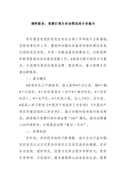 / 【七哥公文】2024年:调研报告:党建引领乡村治理促进乡村振兴+更多免费公文+VX:QiGeGongWen2024