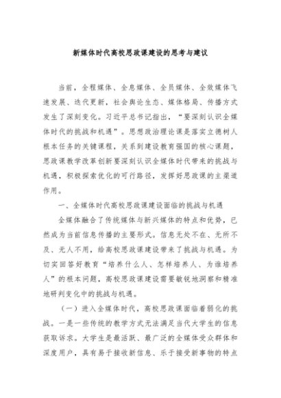 【七哥公文】2024年:新媒体时代高校思政课建设的思考与建议+更多免费公文+VX:QiGeGongWen2024