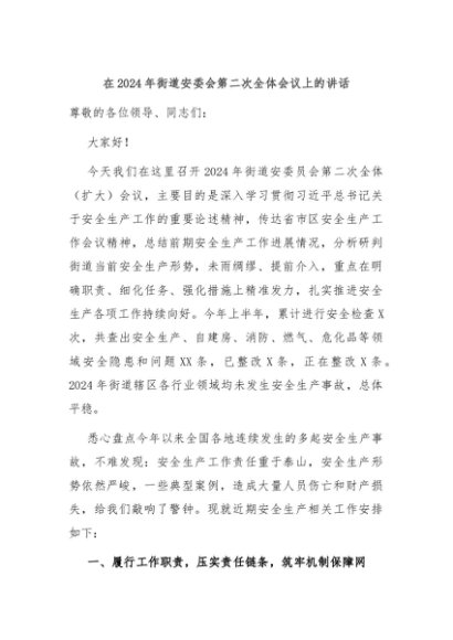 / 【七哥公文】2024年:在2024年街道安委会第二次全体会议上的讲话+更多免费公文+VX:QiGeGongWen2024