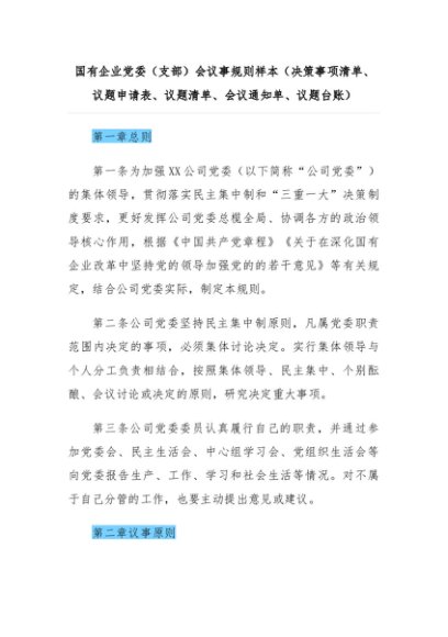 【七哥公文】2024年:国有企业党委(支部)会议事规则样本(决策事项清单、议题申请表、议题清单、会议通知单、议题台账)+更多免费公文+VX:QiGeGongWen2024