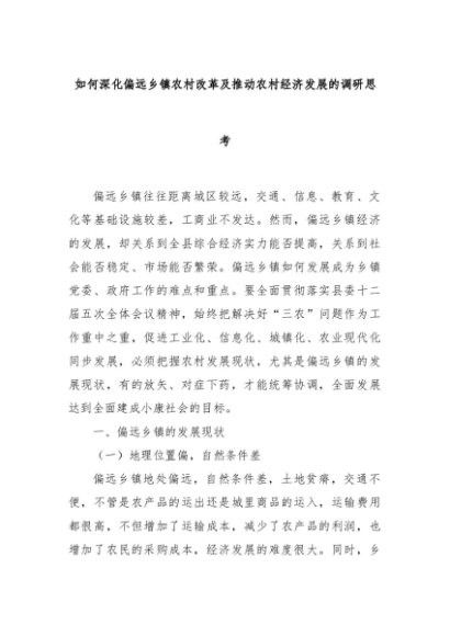 【七哥公文】2024年:如何深化偏远乡镇农村改革及推动农村经济发展的调研思考+更多免费公文+VX:QiGeGongWen2024