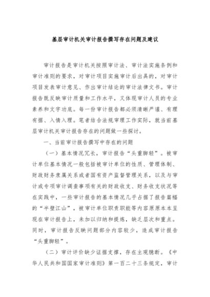 【七哥公文】2024年:基层审计机关审计报告撰写存在问题及建议+更多免费公文+VX:QiGeGongWen2024