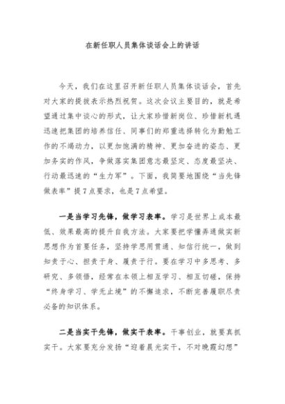 / 【七哥公文】2024年:在新任职人员集体谈话会上的讲话+更多免费公文+VX:QiGeGongWen2024