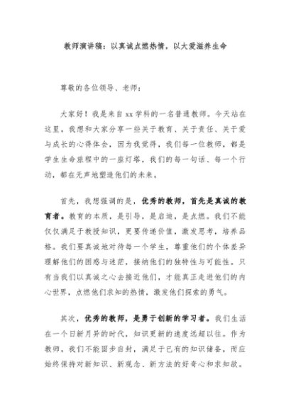/ 【七哥公文】2024年:教师演讲稿:以真诚点燃热情,以大爱滋养生命+更多免费公文+VX:QiGeGongWen2024