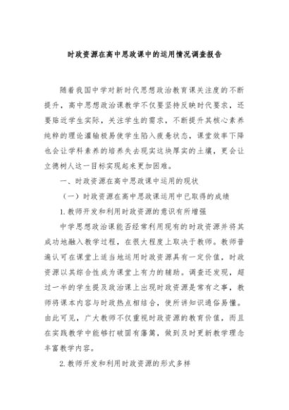 【七哥公文】2024年:时政资源在高中思政课中的运用情况调查报告+更多免费公文+VX:QiGeGongWen2024