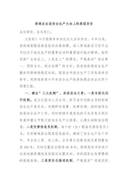 / 【七哥公文】2024年:街道在全县安全生产大会上的典型发言+更多免费公文+VX:QiGeGongWen2024