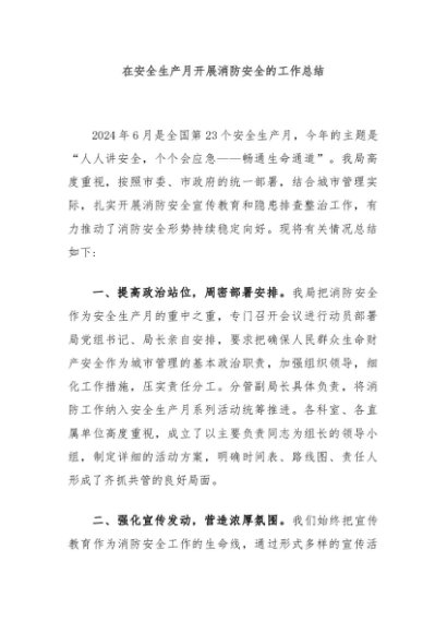 / 【七哥公文】2024年:在安全生产月开展消防安全的工作总结+更多免费公文+VX:QiGeGongWen2024