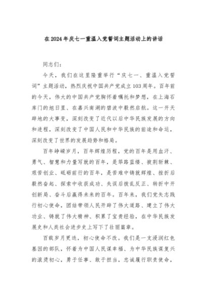 / 【七哥公文】2024年:在2024年庆七一重温入党誓词主题活动上的讲话+更多免费公文+VX:QiGeGongWen2024