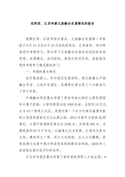 / 【七哥公文】2024年:赴陕西、江苏考察文旅融合发展情况的报告+更多免费公文+VX:QiGeGongWen2024