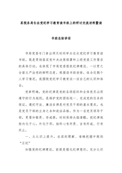 【七哥公文】2024年:某税务局长在党纪学习教育读书班上的研讨交流材料暨读书班总结讲话+更多免费公文+VX:QiGeGongWen2024