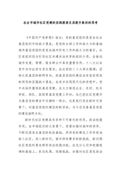 / 【七哥公文】2024年:在全市城市社区党建的实践探索及其提升路径的思考+更多免费公文+VX:QiGeGongWen2024
