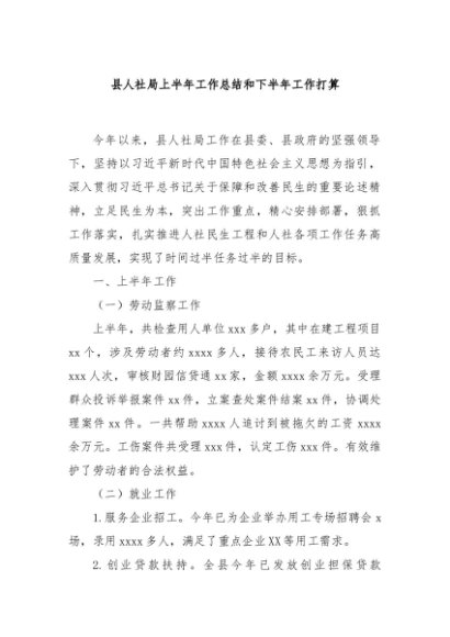 / 【七哥公文】2024年:县人社局上半年工作总结和下半年工作打算+更多免费公文+VX:QiGeGongWen2024